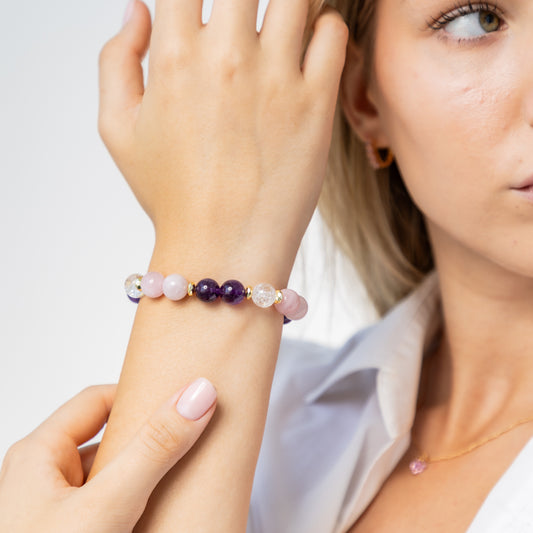 Rosenquarz Armband mit Amethyst und Bergkristall